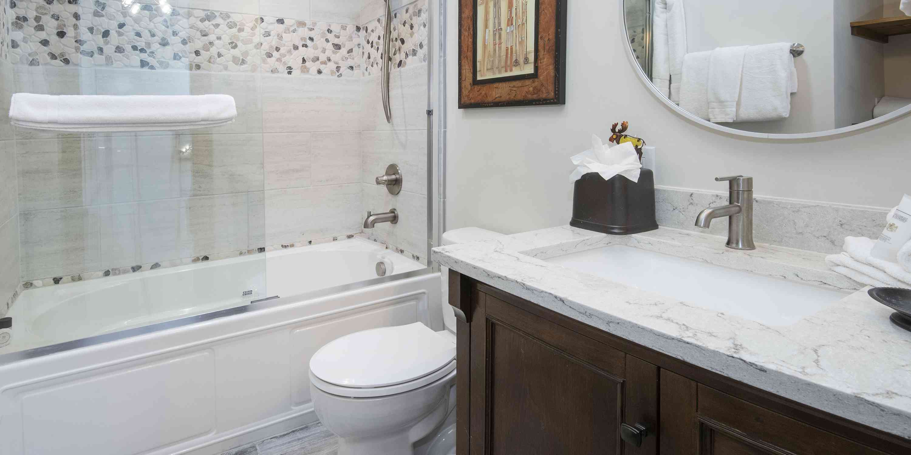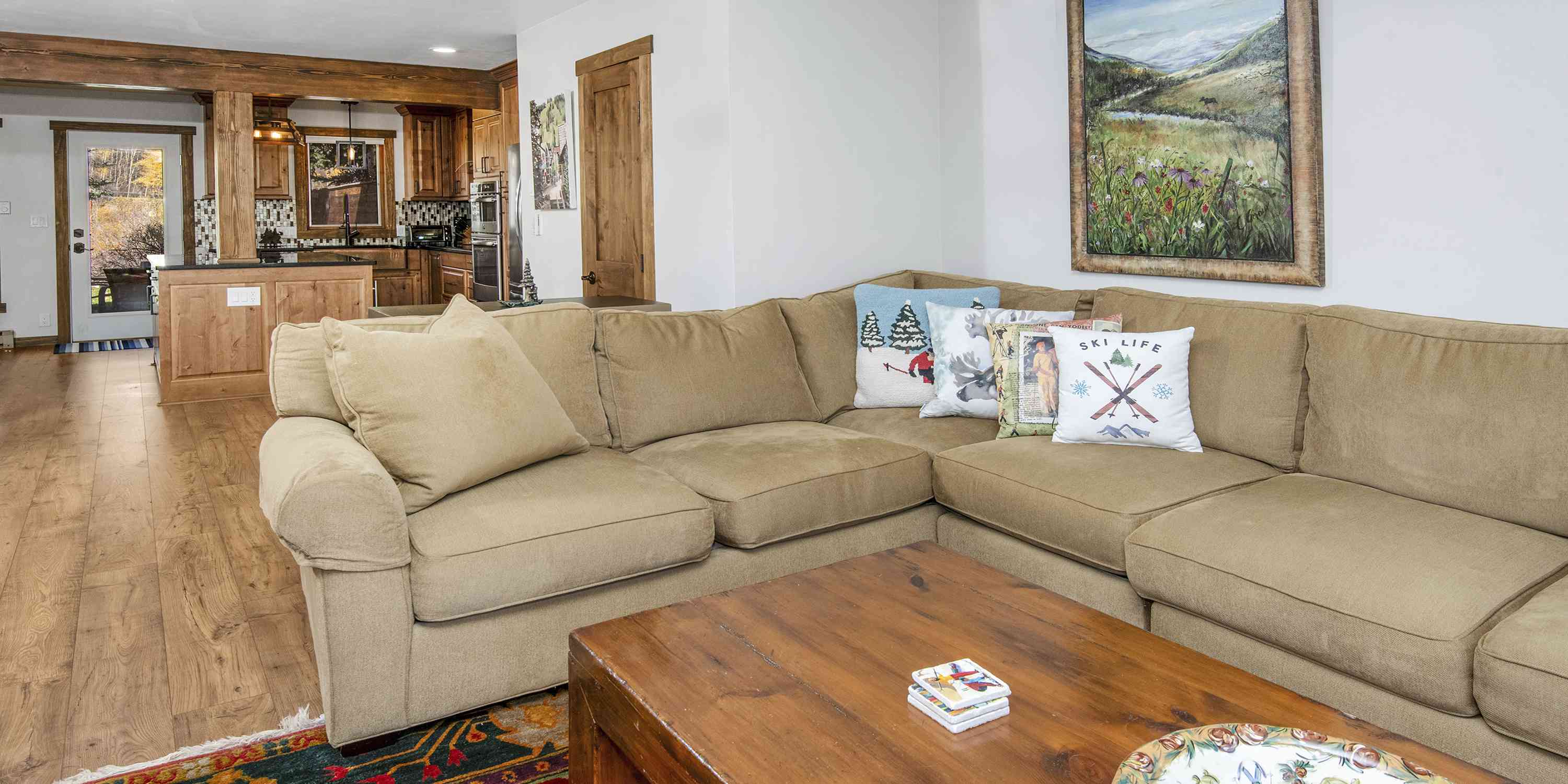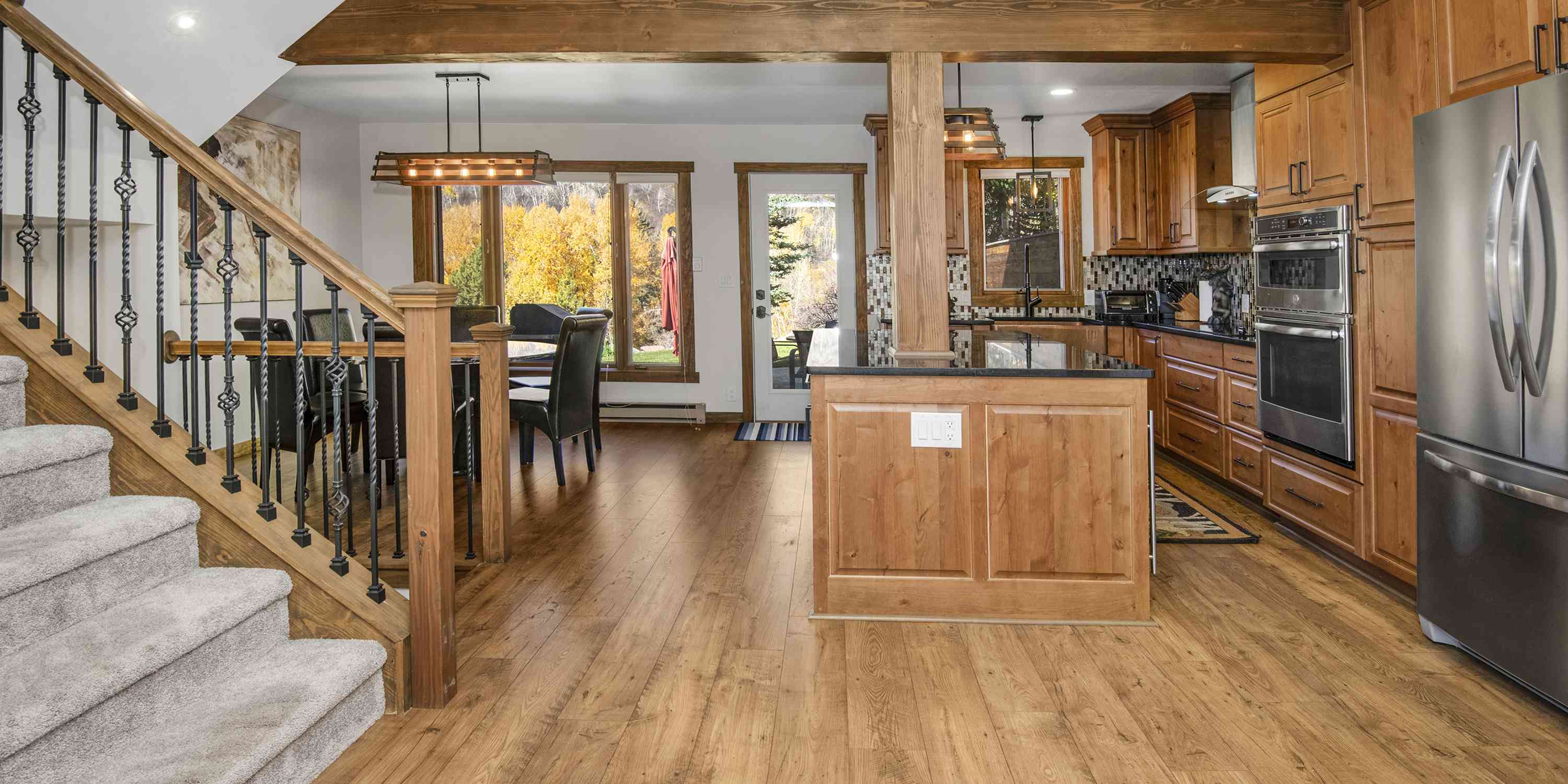 The heart of this home beats within its thoughtfully redesigned kitchen, where granite countertops meet farmhouse elegance through a distinctive copper sink and soft-close knotty alder cabinets. New stainless appliances and wrapped beams create an inviting space that flows effortlessly to your private deck, where morning coffee tastes infinitely better with Beaver Creek vistas as your backdrop.